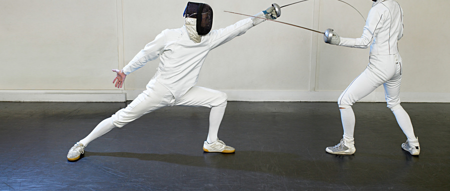 進(jìn)攻技術(shù)包括直刺進(jìn)攻和轉(zhuǎn)移進(jìn)攻。直刺進(jìn)攻是先伸手臂緊接出弓步,手指控制劍尖向目標(biāo)刺出,手臂不要一開(kāi)始就過(guò)于伸直,應(yīng)基本伸直,肩關(guān)節(jié)保持放松狀態(tài)直到擊中一瞬間才充分伸展手臂。轉(zhuǎn)移進(jìn)攻是在一條線上發(fā)動(dòng),結(jié)束在對(duì)手暴露部位的另一條線上,用劍尖在對(duì)手的劍下方做一個(gè)半圓形轉(zhuǎn)移動(dòng)作,同時(shí)伸臂刺向?qū)κ直┞兜哪繕?biāo)。