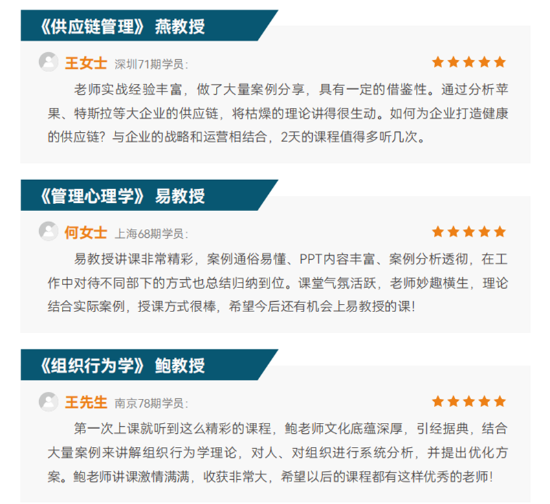 具有多年國際碩博教育經(jīng)驗(yàn),教授課程課件內(nèi)容會根據(jù)時事不斷調(diào)整與更新,確保給學(xué)員傳輸先進(jìn)的企業(yè)管理之道。