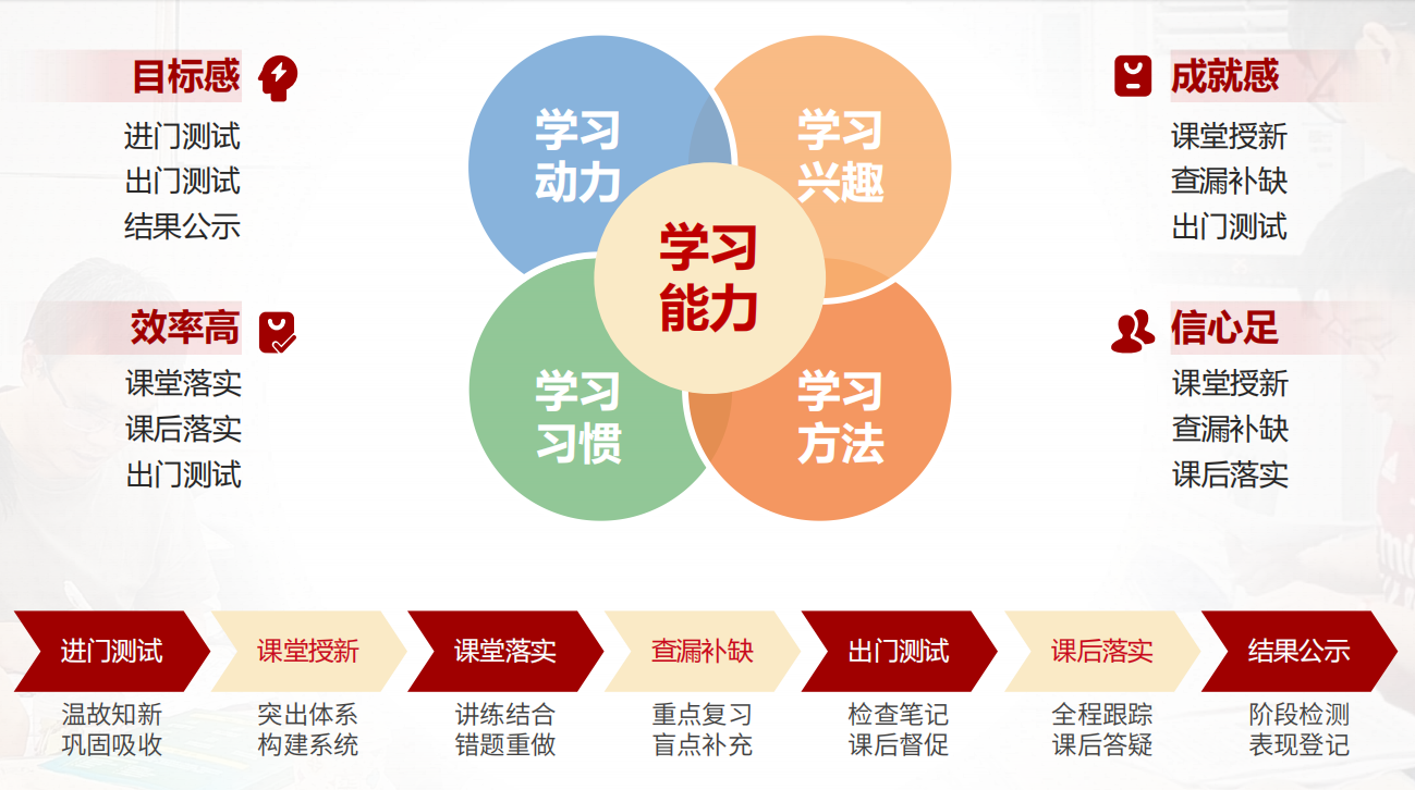 臨界生導師制,各科分組分層,個性化知識增補,突破單科瓶頸。