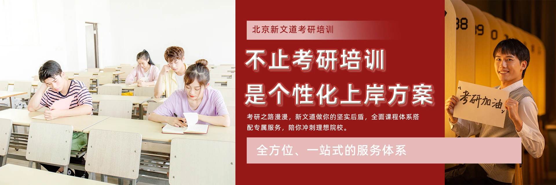 北京新文道考研培訓(xùn)機(jī)構(gòu),依托新文道教育科技集團(tuán)的強(qiáng)大實(shí)力,在北京設(shè)立直營公司,地理位置優(yōu)越,毗鄰眾多知名高校,學(xué)習(xí)氛圍濃厚。我們匯聚考研行業(yè)資深教師,以強(qiáng)大的教學(xué)教研為基礎(chǔ),結(jié)合教師多年授課經(jīng)驗(yàn),為學(xué)員提供OMO鳳凰計(jì)劃、金鳳凰集訓(xùn)營、一對一輔導(dǎo)、網(wǎng)課等多元化教學(xué)產(chǎn)品。課程涵蓋考研初試公共課、專業(yè)課以及復(fù)試課程,為學(xué)員提供全方位、一站式、系統(tǒng)化的學(xué)習(xí)方案。我們精準(zhǔn)診斷學(xué)員學(xué)習(xí)問題,量身定制學(xué)習(xí)方案,使線上、線下學(xué)習(xí)效果倍增,實(shí)現(xiàn)教育過程閉環(huán),助力學(xué)員成功上岸。