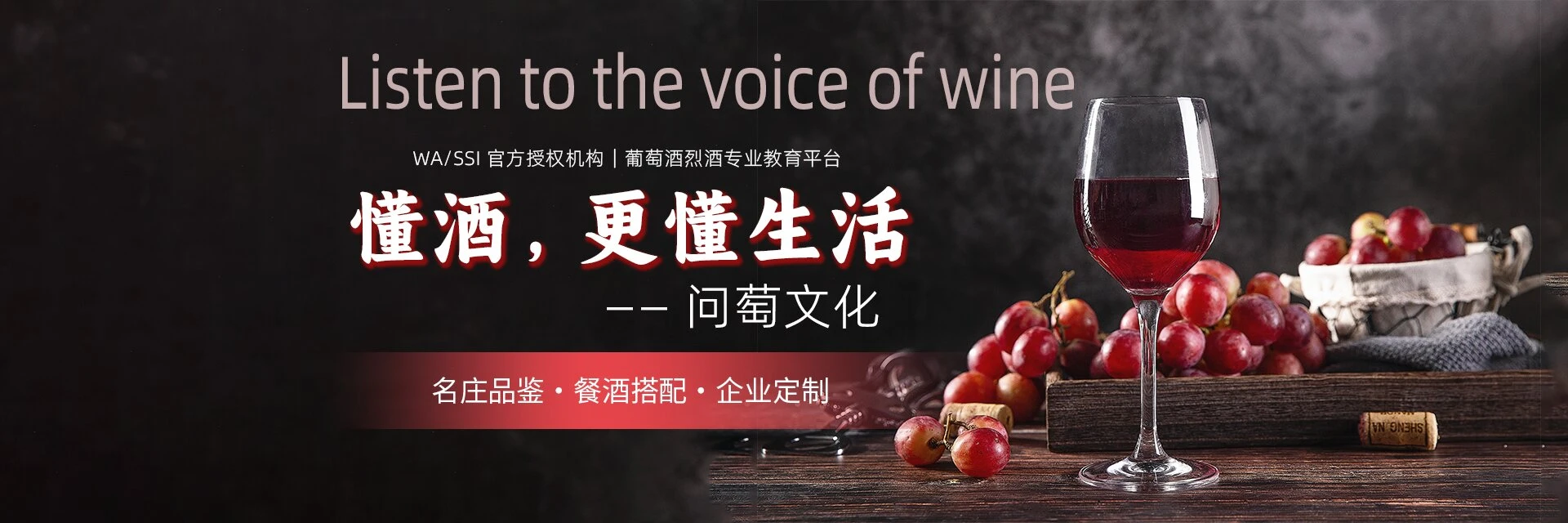 問萄文化為廣大酒業(yè)人士及葡萄酒與烈酒愛好者提供國際上權(quán)威的專業(yè)葡萄酒及烈酒認(rèn)證課程如問萄葡萄酒系列認(rèn)證課程、蘇格蘭威士忌官方認(rèn)證課程(WA)、 SSI日本清酒(唎酒師)國際級(jí)專業(yè)課程等認(rèn)證課程,以及個(gè)性化的葡萄酒定制課程和特色葡萄酒課程如:雪茄品鑒課、名莊品鑒、餐酒搭配、酒禮儀、精品咖啡課與企業(yè)管理等特色課程等。